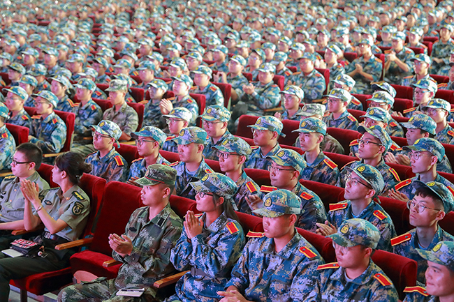 校军训工作领导小组成员及1200多名2019级新生代表聆听了报告。