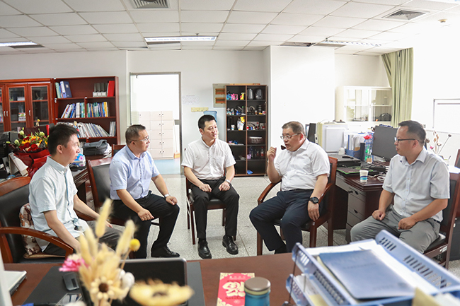 在通灌校区主楼15层,国家技术发明奖二等奖获得者、药学院高嵩博士从王自力手中接过鲜花,非常开心。他和团队成员共同向王书记汇报了近期申报国家自然科学基金项目的准备和进展情况,王自力非常欣喜,他表示,希望全校青年博士教师、重点团队积极申报国家自然科学基金项目,争取在项目数量上实现新的突破,营造人人参与的良好氛围,争取科研工作打个漂亮的翻身仗。