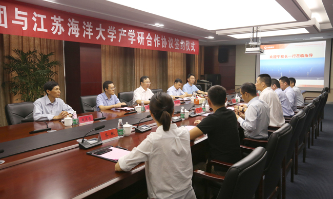 在乔光辉的陪同下,宁晓明一行考察了中复连众风电科技有限公司,并在生产车间详细了解了风力发电机用叶片的前沿研发动态及最新生产工艺。随后,宁晓明一行前往中复连众复合材料集团总部,校企双方进行了座谈交流。乔光辉介绍了集团的发展历史、产业布局和未来发展规划,宁晓明介绍了江苏海洋大学的基本情况及今后的发展思路。双方在友好坦诚的气氛中进行了深入交流,并签署了产学研合作协议。