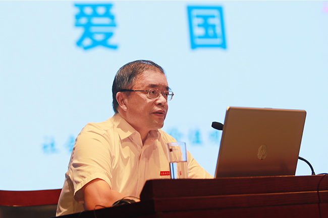 王自力全面梳理了习近平总书记对爱国主义的重要论述,从5个方面阐释了“爱国”的内涵:第一,爱国主义是中华民族民族精神的核心;第二,中国梦是当代中国爱国主义的鲜明主题;第三,爱国不能停留在口号上,要扎根人民、奉献国家;第四,坚持爱国和爱党、爱社会主义相统一是当代中国爱国主义的本质;第五,做爱国主义精神最坚定的弘扬者、实践者、传播者。