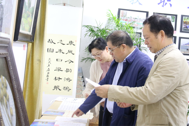 10月9日下午,我校“壮丽七十年 追梦再启航”庆祝新中国成立70周年教职工书画摄影展在兴海楼二楼教工活动室举办。校党委书记王自力、党委副书记史顺良参观展览,并对展出的作品给予肯定和赞赏。校党委办公室、工会等部门负责人,以及部分教职工参观了展览。