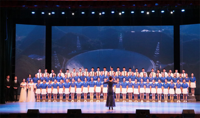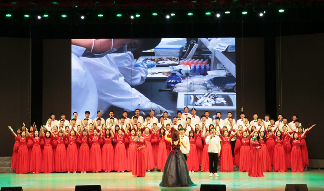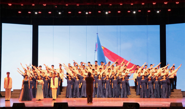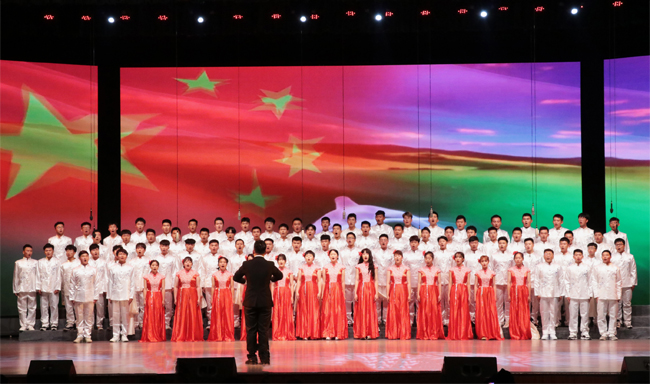 本次比赛共有来自全校的18支合唱队参加,各支队伍从服装、选曲到赛前训练,都进行了精心的准备,比赛中展现出了积极进取、昂扬向上的精神风貌。留学生联合队以一首中国传统曲目《茉莉花》拉开了比赛的帷幕,他们用歌声表达了对中国的热爱。随后,登场的队伍分别带来了《我为祖国献石油》《不忘初心》《走向复兴》《中国之最》《黄水谣》《我和我的祖国》等经典爱国主义歌曲。参赛的青年学生倾情放歌,用嘹亮的歌声、饱满的热情为祖国送上深情的赞美和祝福,讴歌新中国成立70年来的光辉历程与伟大成就。