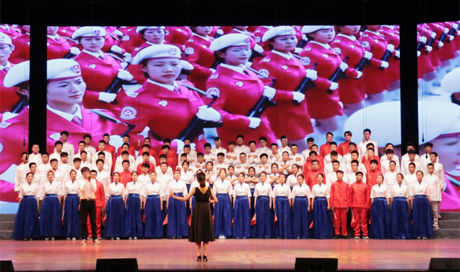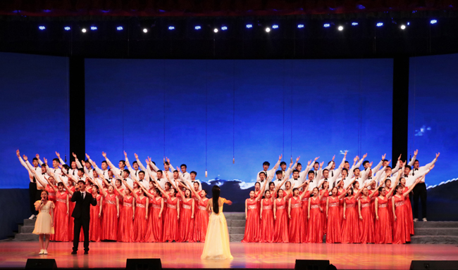 为庆祝新中国成立70周年,激发全校师生的爱国主义情怀,10月9日下午,我校在苍梧校区大礼堂隆重举行“我和我的祖国”庆祝新中国成立70周年大合唱比赛。校党委书记王自力、副校长李梅英出席活动,校党委常委、宣传部长杨雪英和来自连云港市音乐家协会的4名专家担任比赛评委,党委学生工作部、党委研究生工作部、国际交流与合作处、团委等部门负责人现场观看了比赛。
