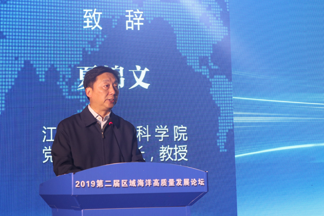 夏锦文致辞。他代表江苏省社会科学院向各位领导和专家表示热烈欢迎。夏锦文指出江苏省社会科学院作为省委省政府“智囊团”“思想库”,十分重视海洋经济发展和自贸区建设研究,与江苏海洋大学联合举办第二届区域海洋高质量发展论坛,目的就是与大家一起围绕区域海洋经济高质量发展与江苏自贸区连云港片区的建设实践进行深入研讨,推进相关研究进一步提升水平、提高质量。