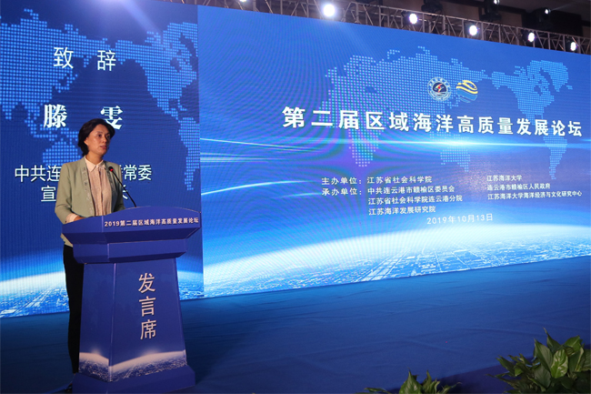 滕雯致辞。她代表市委、市政府对莅临本次论坛的领导和嘉宾表示了诚挚的欢迎和衷心的感谢。滕雯希望与会专家学者聚焦“区域海洋高质量发展与江苏(连云港)自贸区建设”主题,通过学术交流、研讨,共谋海洋经济高质量发展新思路,共商现代海洋经济新作为,多为港城和赣榆海洋经济发展出计献策,为进一步做大做强港城海洋经济,助力开启港城开放型海洋经济新时代。