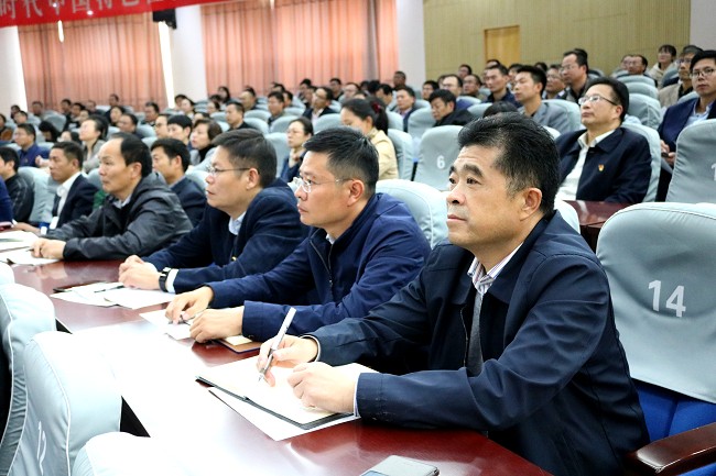 省委第十四巡回指导组成员顾俊祥、李小敏,我校全体中层干部、党支部书记,以及江苏财会职业学院的党员干部参加了报告会。