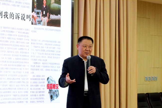两个小时的报告会,郑晋鸣教授全程站着,讲述了王继才、王仕花夫妇守岛卫国32年的感人事迹,介绍了关于王继才通讯报道的挖掘和写作过程,诠释了王继才“家就是岛,岛就是国,守岛就是卫国”的核心精神。讲到深情处,郑教授眼里噙满了泪花,台下的观众也不时擦拭眼角的泪水。