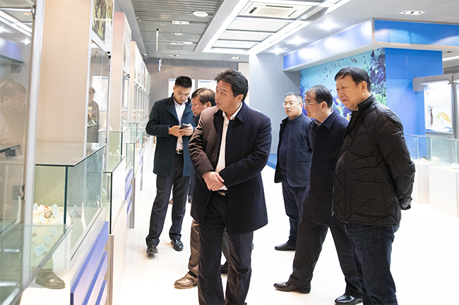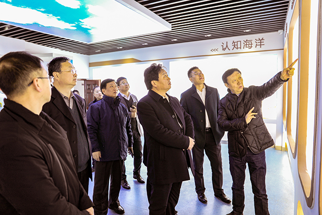 会前,宁晓明陪同于立忠参观了我校海洋经济与文化研究中心、海洋工程技术研究中心和海洋馆。