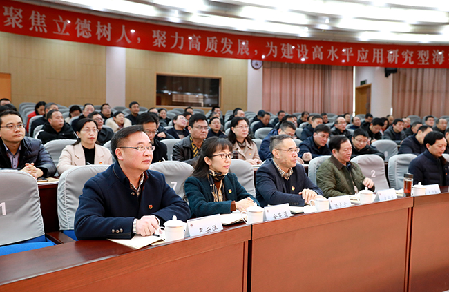 省委第十四巡回指导组成员张继东、沈楠,在连的校领导、全体中层正职干部、部分教授党员代表、教职工党员代表和学生党员代表了参加会议。