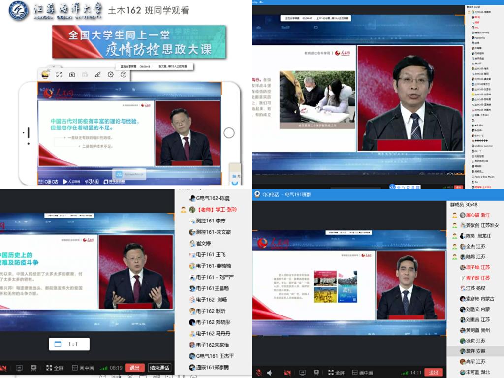 3月9日下午,我校全体同学纷纷通过电脑、手机、平板相聚云端,与全国大学生一起,观看由教育部社科司与人民网联合组织的“全国大学生同上一堂疫情防控思政大课”。