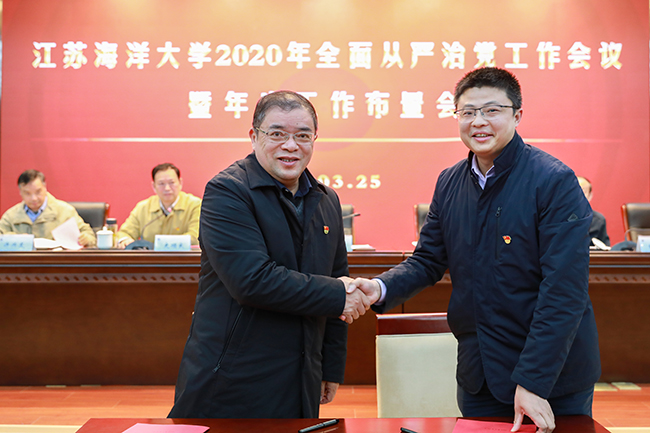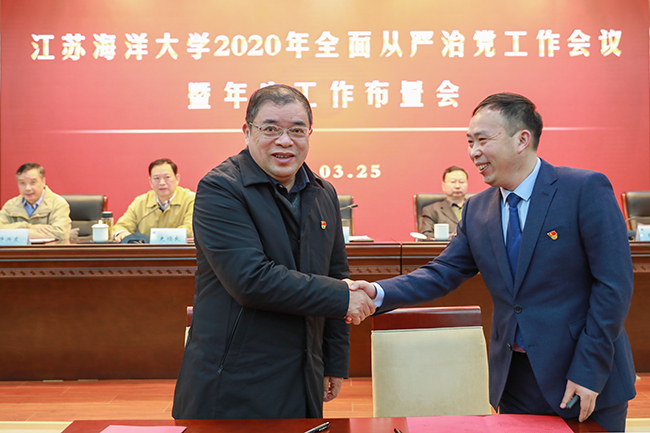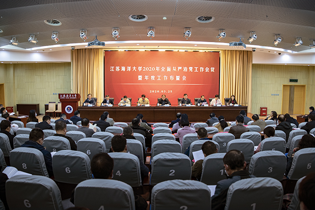 3月25日,我校在会议中心黄海厅召开2020年全面从严治党工作会议暨年度工作布置会,就扎实推进全面从严治党和学校2020年度工作进行安排部署。会上,校长宁晓明部署年度党政工作,校纪委书记陈先宏作党风廉政建设和反腐败工作报告,校党委书记王自力就扎实推进全面从严治党和学校重点工作提出明确要求。校党委副书记史顺良主持会议。