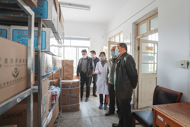 在卫生科,校领导详细询问了体温计、一次性口罩、防护服、消毒液等防疫物资准备情况,要求防疫物资准备工作思路要靠前,不仅要物资到位,还要做好物资的分配使用方案、突发情况造成的物资短缺应急预案。