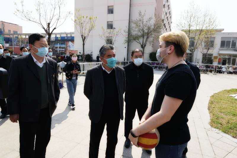 督导过程中,项雪龙遇到来自俄罗斯、卢旺达的两名外籍学生,得知他们因为疫情影响,假期没有回家,一直住在学校,项雪龙关切地询问学习生活情况。两位同学说,这段时间,学校和老师对他们的生活安排照顾得很好,还发了口罩和水果,让他们感到非常贴心。项雪龙表示赞许,鼓励他们安下心来,和老师同学们共抗疫情,积极乐观投入到新学期的学习生活中去。
