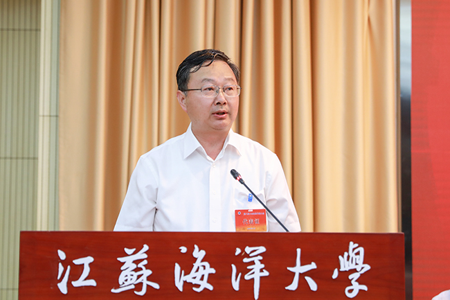 连云港市总工会副主席张明富对大会的召开表示热烈的祝贺并发表了热情洋溢的讲话。他表示,学校2019年成功更名后提出的“提高内涵建设、建设高水平应用研究型海洋大学”这一目标,体现了全体教职工、工会会员的殷切期望和责任感。同时,他就如何做好新形势下的工会工作提了宝贵意见:一是要慎终如始,扎实推进防疫和教学工作,实现两手抓两手硬;二是要激发创新活力,在服务学校事业发展中建功立业;三是要提升服务能力,切实增强教职工获得感幸福感。