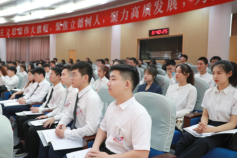 6月13日上午,江苏海洋大学第八次学生代表大会、第七次研究生代表大会在苍梧校区会议中心隆重举行,副校长金芙蓉出席会议并讲话。党委学生工作部、党委研究生工作部、校团委等部门负责人及260余名本科生、研究生代表参加了本次大会。