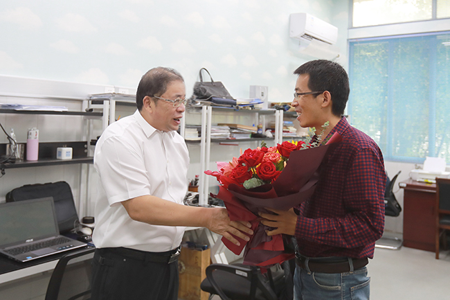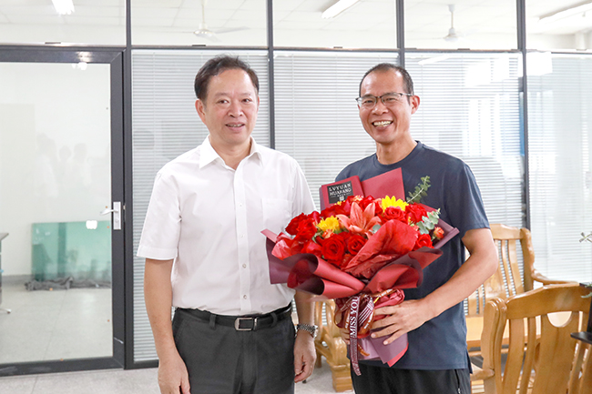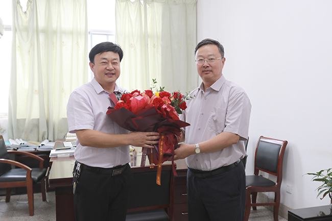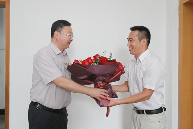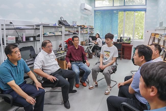 “教师节快乐!”在机械工程学院,王自力看望了文西芹教授,并关切地询问,“教学任务重不重?”“产学研合作方面还有哪些社会兼职工作?”并希望文教授带领学院年轻教师继续发挥专业优势,积极搭建平台,整合资源,在推动校企深度合作方面建桥搭路,创造更好的业绩。