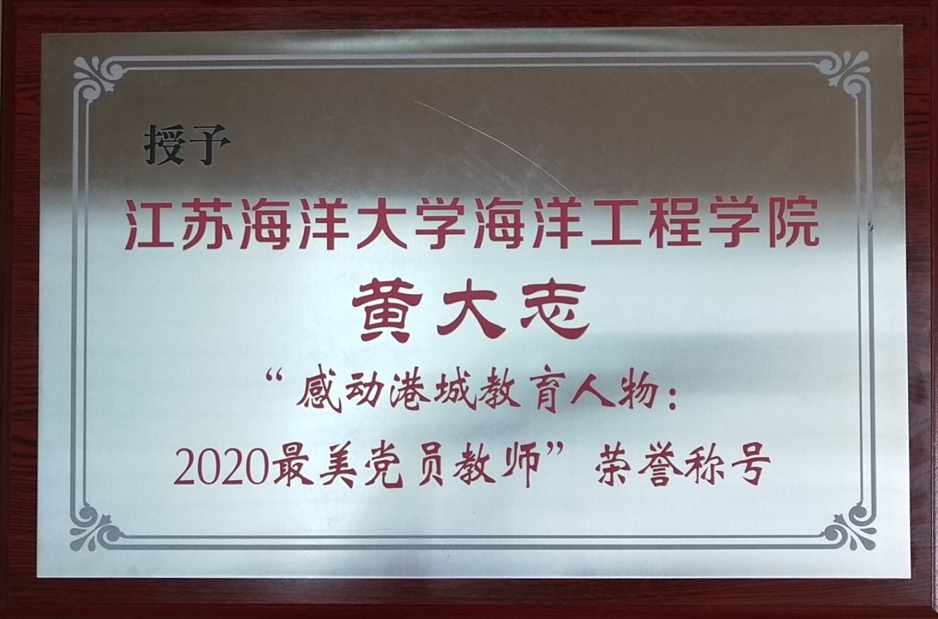 9月9日,值第36个教师节来临之际,“感动港城教育人物:2020最美党员教师(团队)”颁奖典礼在市政办公中心三楼会议室隆重举行。连云港市委教育工委对16个“感动港城教育人物:2020最美党员教师团队”、16名“感动港城教育人物:2020最美党员教师”进行了表彰。我校海洋生态与环境党员教师团队获“最美党员教师团队”荣誉称号,海洋工程学院副院长兼党总支副书记黄大志同志获“最美党员教师”荣誉称号。