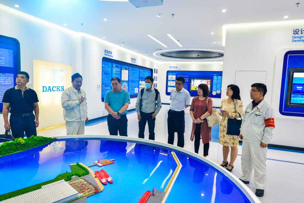 9月27日,大连中远海运川崎船舶工程有限公司总经理许维明、党委书记潘志远热情接待了王自力一行,全面介绍了公司的总体情况,重点介绍了公司的造船技术、制造工艺和管理体系,并实地考察了造船车间、船体舾装的有关情况。