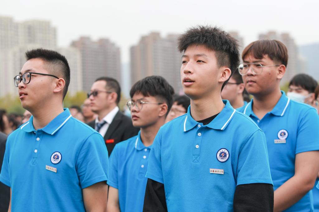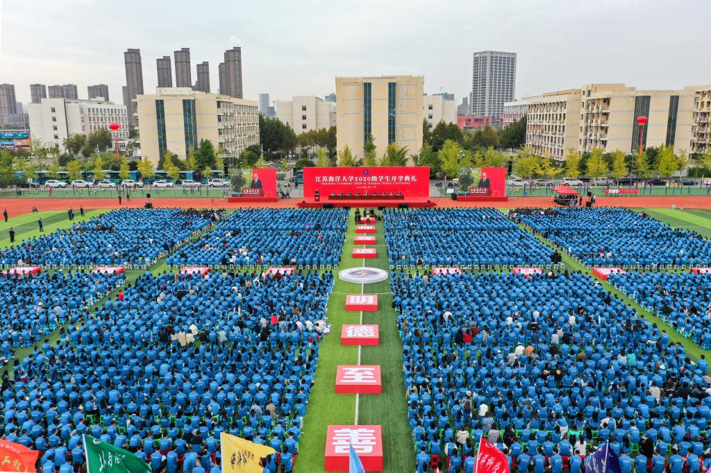 开学典礼以全场师生共同齐唱江苏海洋大学校歌《蔚蓝的信仰》结尾。