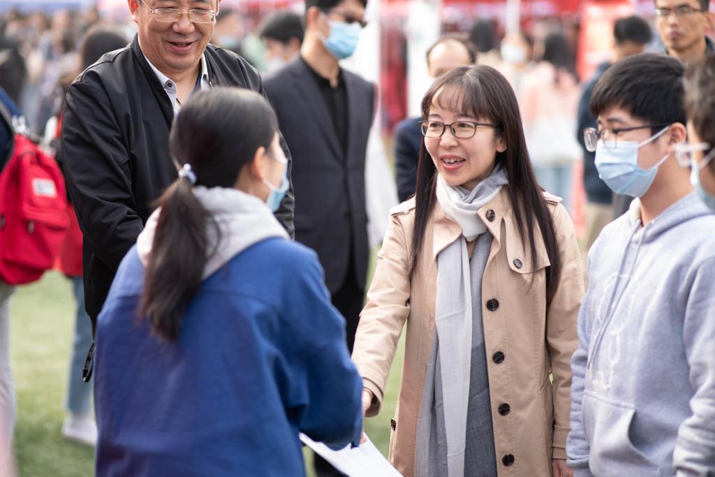 副校长金芙蓉到现场视察,与毕业生亲切交流