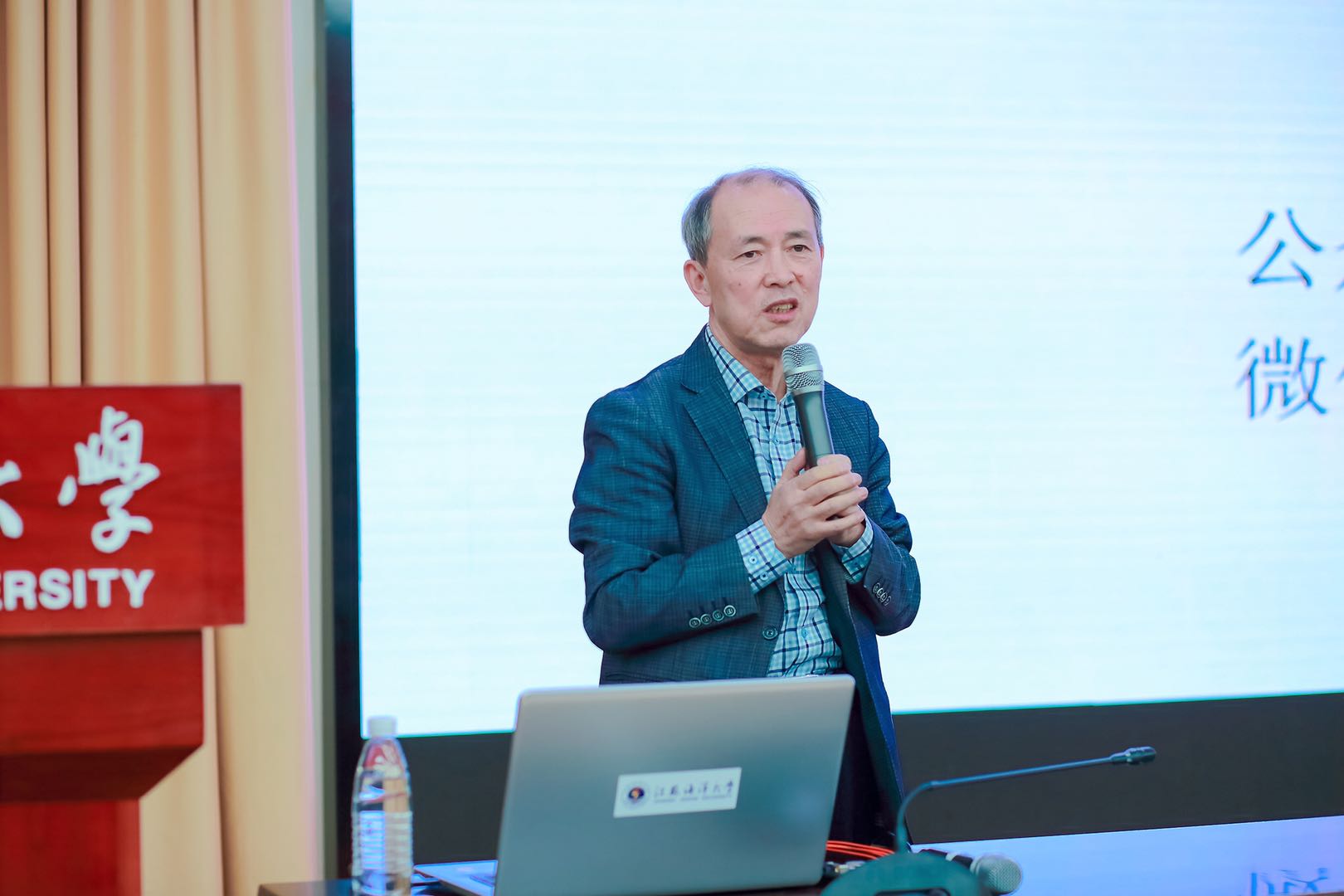 校长宁晓明在报告会前会见曲建武教授