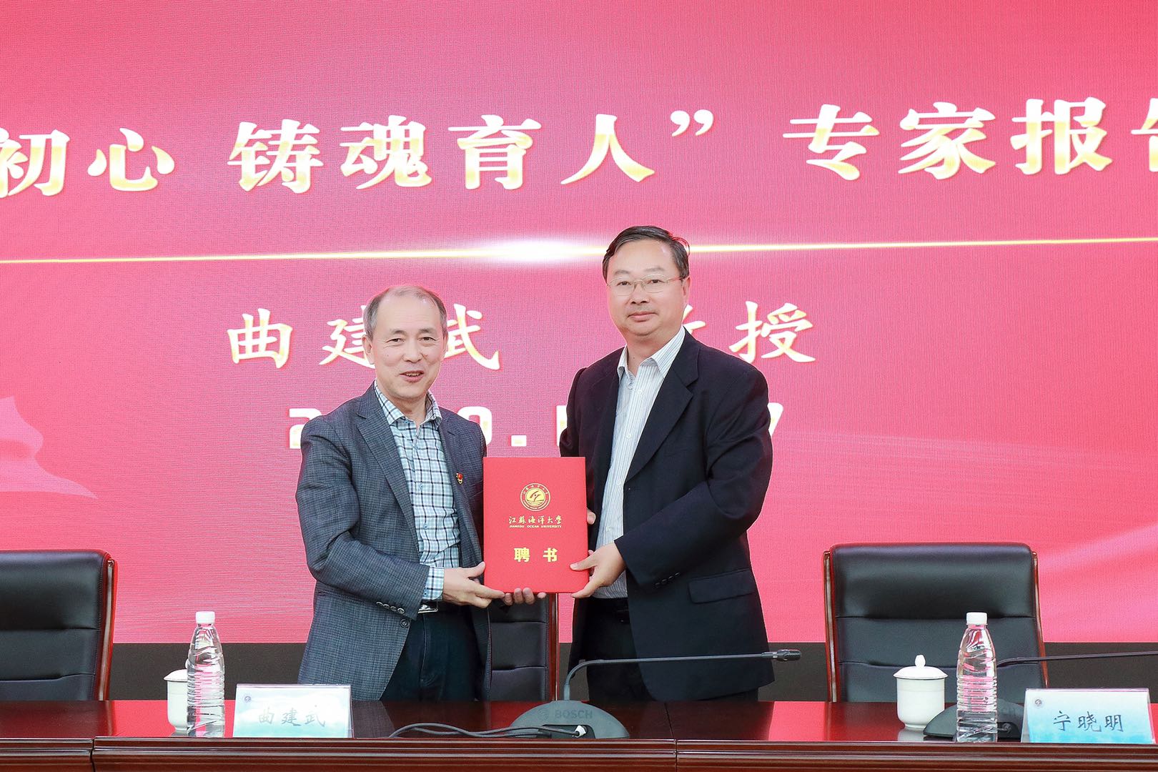 校长宁晓明为曲建武教授颁发客座教授聘书并合影留念