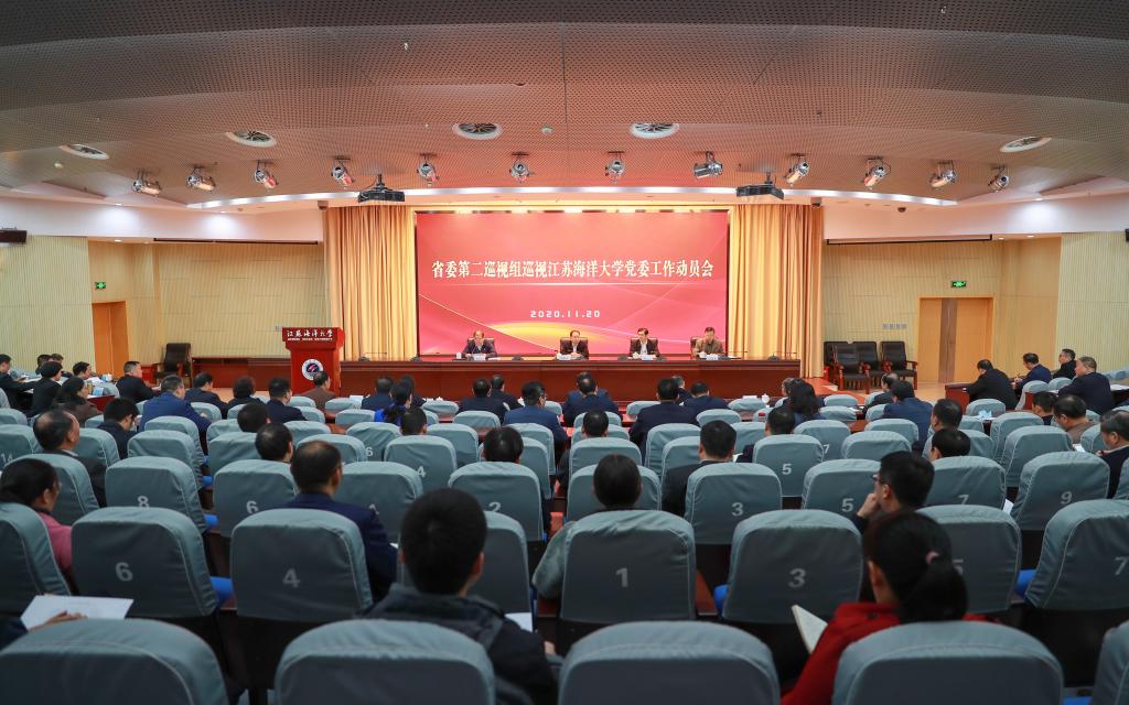 根据省委统一部署,2020年11月20日,省委第二巡视组巡视江苏海洋大学党委工作动员会召开。会前,省委第二巡视组主持全面工作的副组长单昕光主持召开与江苏海洋大学党委书记王自力的见面沟通会,传达学习了省委书记娄勤俭同志近期关于巡视工作讲话精神,通报了有关工作安排。会上,单昕光作了动员讲话,并对做好巡视工作提出要求。王自力主持会议并作表态发言。