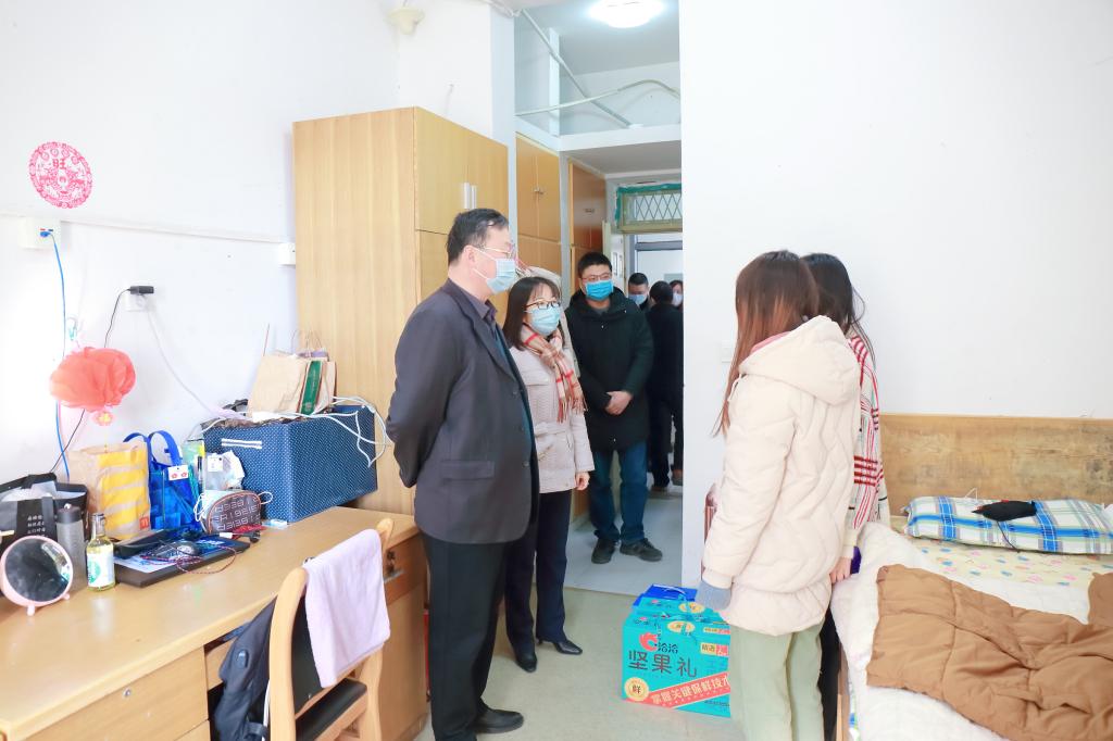 在学生宿舍,校领导们仔细询问了同学们在学习生活等方面的情况,勉励大家要继续按照学校统一部署,做好日常防护,积极锻炼身体,保证健康饮食;叮嘱他们要多与家人沟通,与老师联系。