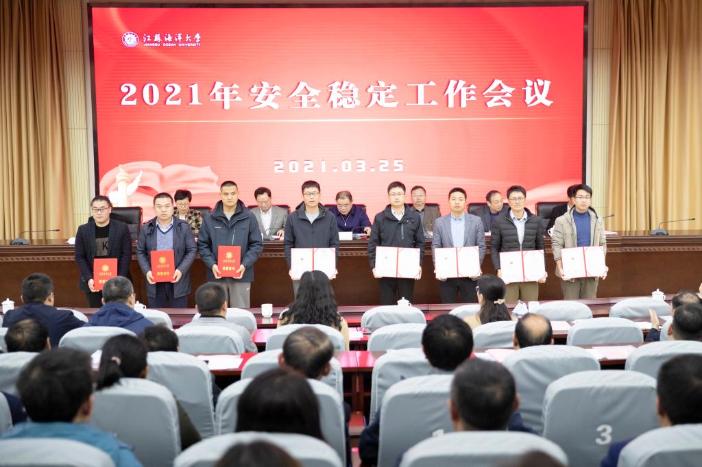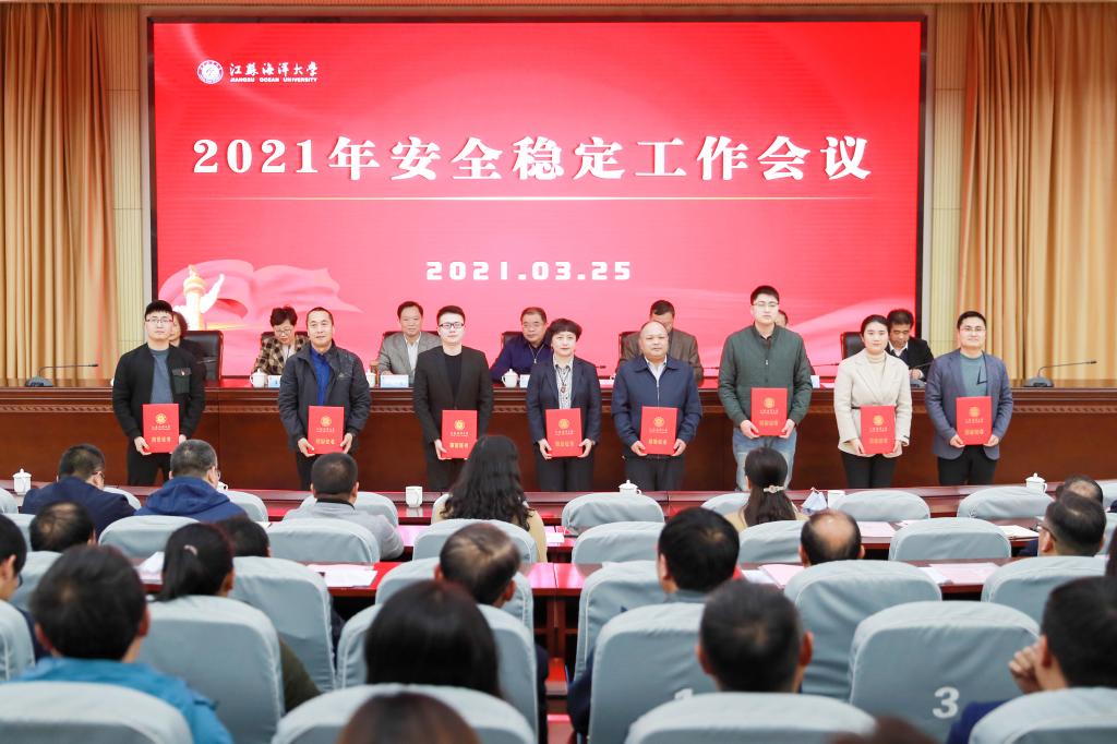 3月25日下午,我校在会议中心黄海厅召开2021年安全稳定工作会议。会议深入学习贯彻习近平总书记关于安全生产重要论述和对江苏安全生产工作的重要指示批示精神,落实全国安全生产电视电话会议部署和省市相关要求,总结我校2020年安全稳定工作,布置2021年安全稳定重点工作。全体在连校领导出席会议,副校长李梅英主持会议。