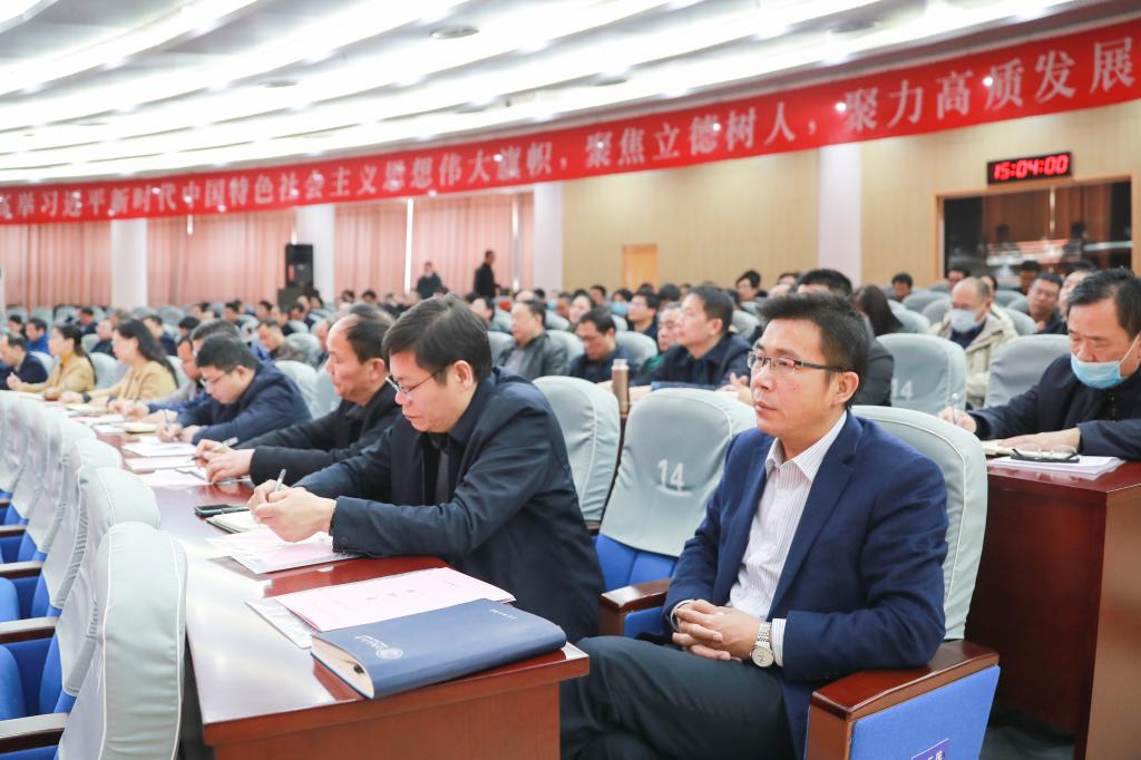 校党委副书记史顺良以“全面深化安全专项整治切实维护校园安全稳定”为题作工作报告。报告指出,2020年,我校以推进校园和校车安全专项整治为主线,慎终如始做好新冠肺炎疫情防控常态化条件下的校园安全稳定工作,学校整体安全状况保持平稳。报告从安全教育有效落实、实验室及危化品安全有效落实、消防安全有效落实、治安防控有效落实、校车及交通安全有效落实、食品安全有效落实、传染病防控有效落实、建筑与施工安全有效落实、实习实训安全有效落实、维护稳定措施有效落实、重点人群安全有效落实、网络安全有效落实等十二个方面,系统总结了我校2020年安全稳定工作,同时指出了存在的问题和不足。在布置2021年工作时,明确了六个方面的重点任务:一是以安全宣教为重点,坚决打赢宣传思想主动战,筑牢意识形态安全防线;二是以严实措施为关键,坚决打赢疫情防控阻击战,夯实学校安全防护能力;三是以落实方案为主线,坚决打赢专项整治合成战,健全学校安全长效机制;四是以重点人群为突破,坚决打赢心理健康阵地战,增强学校风险防控效能;五是以检查整改为抓手,坚决打赢风险隐患攻坚战,提高学校安全治理水平;六是以技防建设为基础,坚决打赢本质安全持久战,提升学校安全管理能力。