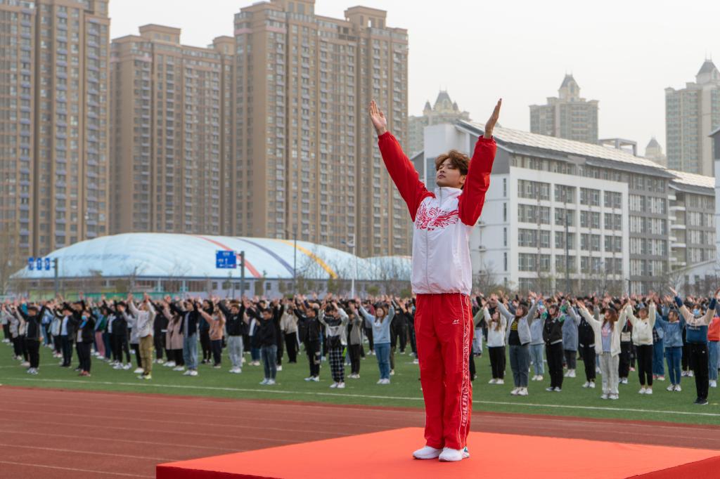 党委宣传部、党委学工部、校团委、体育学院负责人,机械工程学院、电子工程学院、创新创业学院党政班子成员、辅导员以及2019级、2020级全体同学参加。