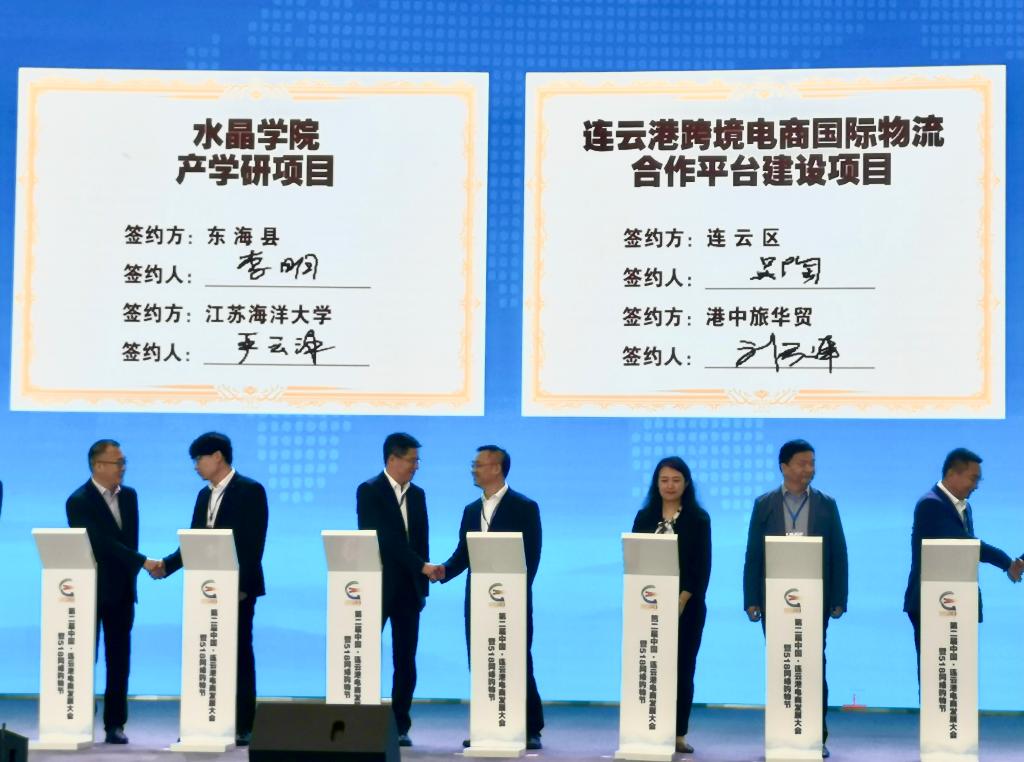 5月18日,在中国连云港电商发展大会暨第二届网络购物节开幕式上,我校副校长严云洋与东海水晶集团党委书记、董事长李明共同为水晶学院产学研项目签约,这标志着由双方共建的水晶产业学院正式成立。