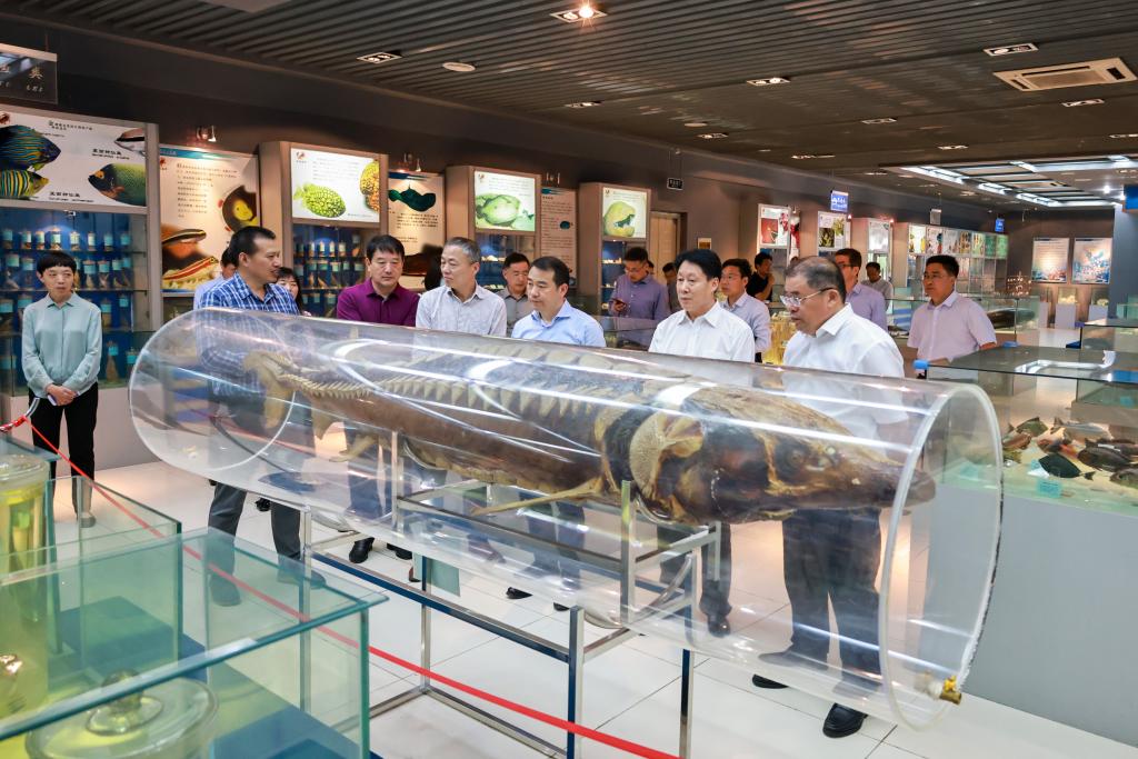 会前,校领导陪同赵炳起、孙爱武一行参观了海洋经济文化研究中心、海洋遥感技术中心、海洋工程技术中心和海洋馆。