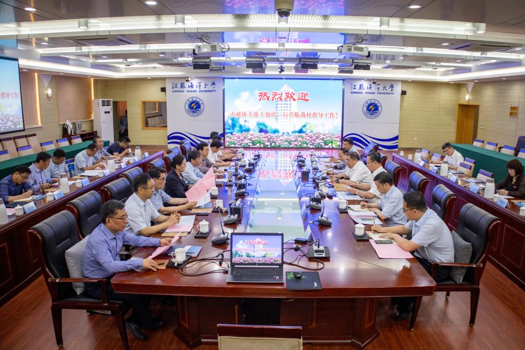 6月2日上午,连云港市政协主席、党组书记王加培率队来我校,就加快融入海洋强国和全省海洋战略、推动海洋科技创新和校企深度融合等开展调研。调研座谈会在会议中心东海厅召开。校党委书记王自力、校长宁晓明、副校长舒小平、许兴友,市政协副主席、党组副书记方韬,市政协副主席黄咏梅、鲁林、匡中远、邸占山、龚成龙、徐善明出席座谈会。王自力主持座谈会。