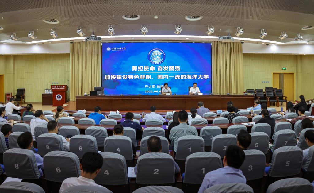 6月4日下午,浙江海洋大学党委书记、博士生导师严小军教授应邀做客我校“校长论坛”,作题为“勇担使命 奋发图强 加快建设特色鲜明 国内一流的海洋大学”的精彩报告。校领导史顺良、舒小平、李梅英、严云洋出席报告会,全体中层干部及部分学科骨干教师代表聆听了报告会。报告会由校长宁晓明主持。