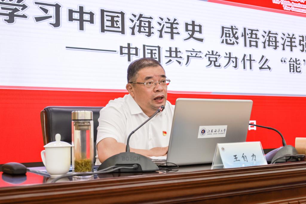 王自力从人类对海洋的认识、世界大国崛起的历史启示切入,系统回顾了古代中国海洋的经验与教训、近代中国海洋的屈辱与抗争、现代中国海洋的崛起与腾飞的历史进程,引导和激励广大党员学史力行,推进学校事业发展开新局谱新篇。