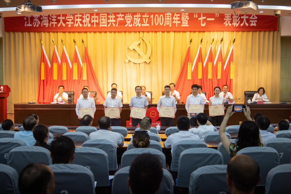 机械工程学院党委被授予“全省高校先进基层党组织”称号,环境与化学工程学院党委等5个基层党组织被授予“校先进基层党组织”称号;施珺、徐军田分别被授予“全省高校优秀共产党员”称号和“连云港市优秀共产党员”称号,马静等11位同志被授予“校优秀共产党员”称号;徐军田、苏成兄等2位同志被授予“校优秀共产党员标兵”称号;司成伟同志被授予“连云港市优秀党务工作者”称号,王秋玉等5位同志被授予“校优秀党务工作者”称号;机关第二党支部等10个单位获“最佳党日活动”奖,商学院会计与财务教工党支部等6个党支部被评为“特色党支部”。与会领导为获得表彰的先进基层党组织和个人发放了奖牌和证书。