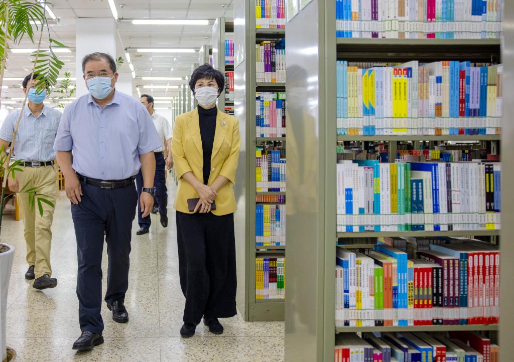 顾月华一行实地察看学校图书馆、食堂、防疫物资仓库、医务室等校内重点场所管理情况,深入了解学校疫情防控相关方面工作,特别是对师生健康状况排查、防控物资储备、校园环境整治、封闭校园管理、应急处置流程等情况进行重点督查,对督查中发现的问题及时提出整改要求。
