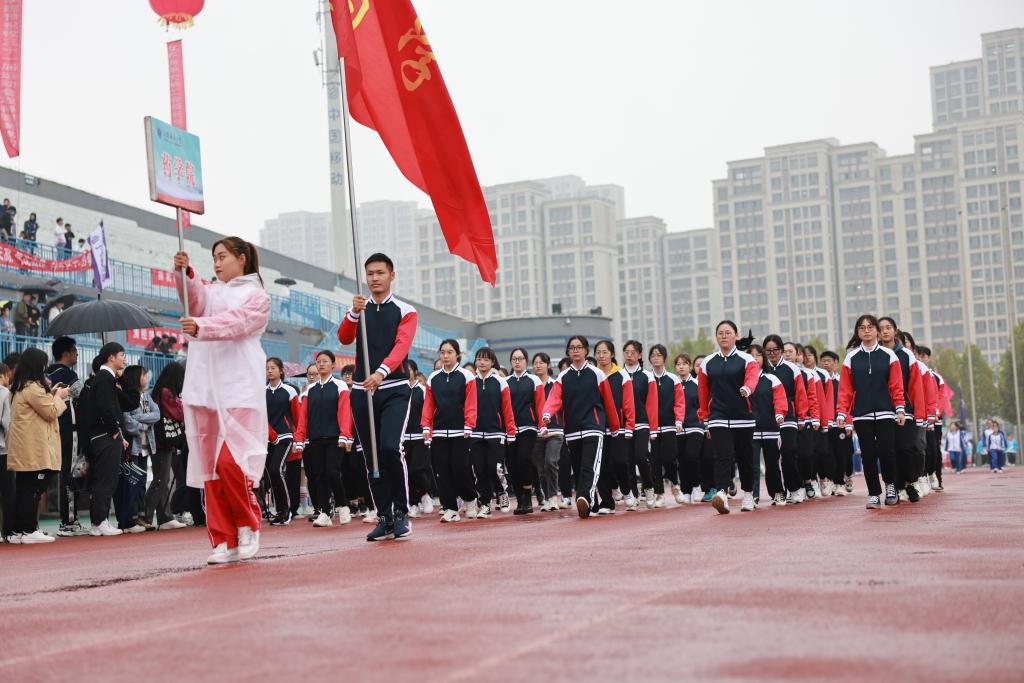 国旗方阵身着军装,严肃整齐,昂首阔步地走向主席台,彩旗方队也为空旷的操场增添了一抹亮色。24支代表队,师生运动员们依次走入赛场,他们昂首挺胸,迈着整齐划一的步子,铿锵有力的口号展现了我校师生积极向上的精神面貌。