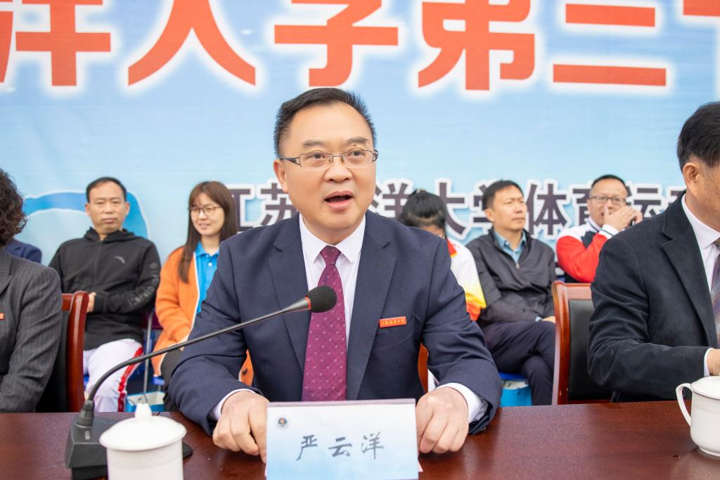 校党委副书记史顺良致开幕词。他强调,体育是学校教育的重要组成部分,是实现立德树人根本任务的基础性工程,对于培养学生爱国主义、集体主义精神和奋发向上、顽强拼搏的意志品质,实现“以体育智、以体育心”具有重要意义。他表示,每年一度的运动会是江苏海洋大学体育生活的重要组成部分,也是我校体育工作的一次大检阅,更是广大师生精神面貌和综合素质的一次集中展示。希望通过本次运动会的举办,在全校范围内营造崇尚健康、热爱运动的浓厚氛围,为加快推进学校事业高质量发展助力。