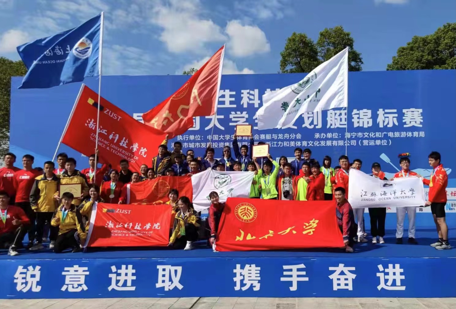 10月22-24日,第5届中国大学生皮划艇锦标赛在浙江海宁鹃湖公园开赛。共有来自北京大学、浙江大学、浙江海洋大学、江苏海洋大学等18所高校130多名运动员参赛。我校代表队获2金1银1铜的好成绩。