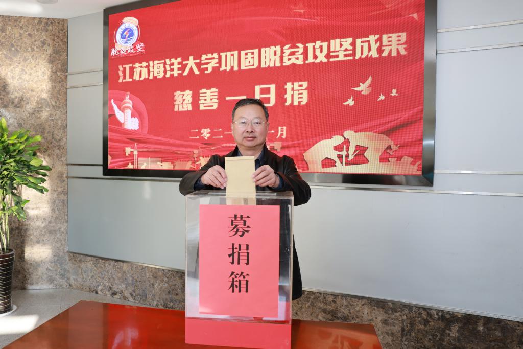 慈善总会副会长朱文来介绍了慈善总会的基本情况,并向江苏海洋大学表示感谢,“江苏海洋大学作为连云港的高校,积极响应号召,捐款献爱心,助力扶贫攻坚,展现了高校的责任和担当!”