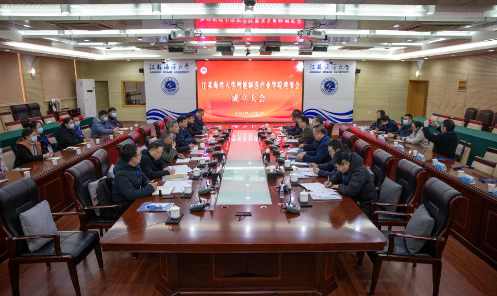 宁晓明宣读了理事会、专家委员会、管理结构组成人员名单并颁发聘书。产业学院院长张元良代表江苏海洋大学与三家合作单位签订了合作协议。合作单位代表刘永能、杨庆洪、骆丹分别就各自单位的发展规划以及与智能制造产业学院对接工作进行了介绍和展望。张元良代表智能制造产业学院对下一阶段发展目标作了表态发言。