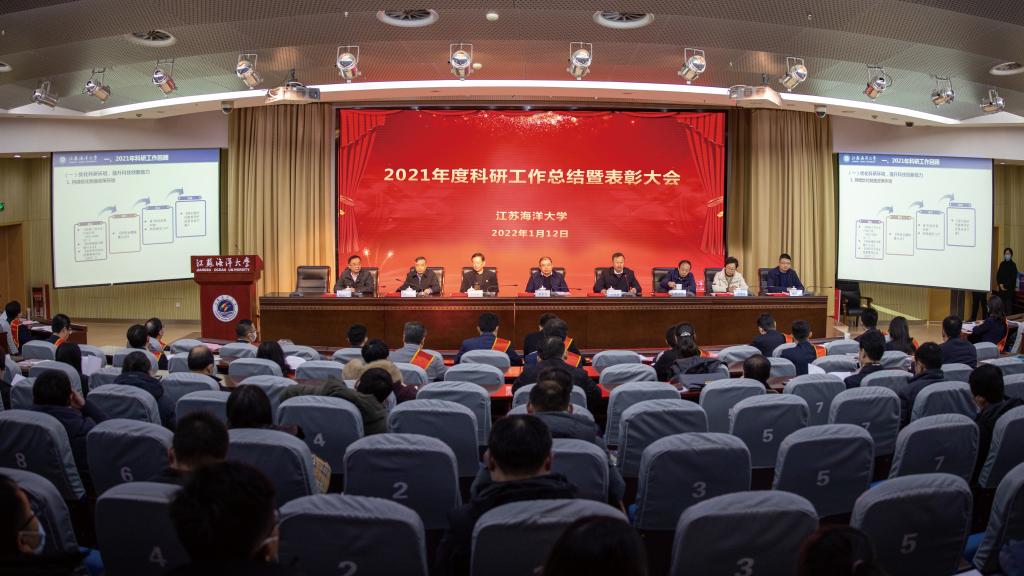 校党委副书记史顺良宣读《江苏海洋大学关于表彰2021年度科研工作先进集体和先进个人的决定》。