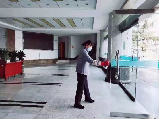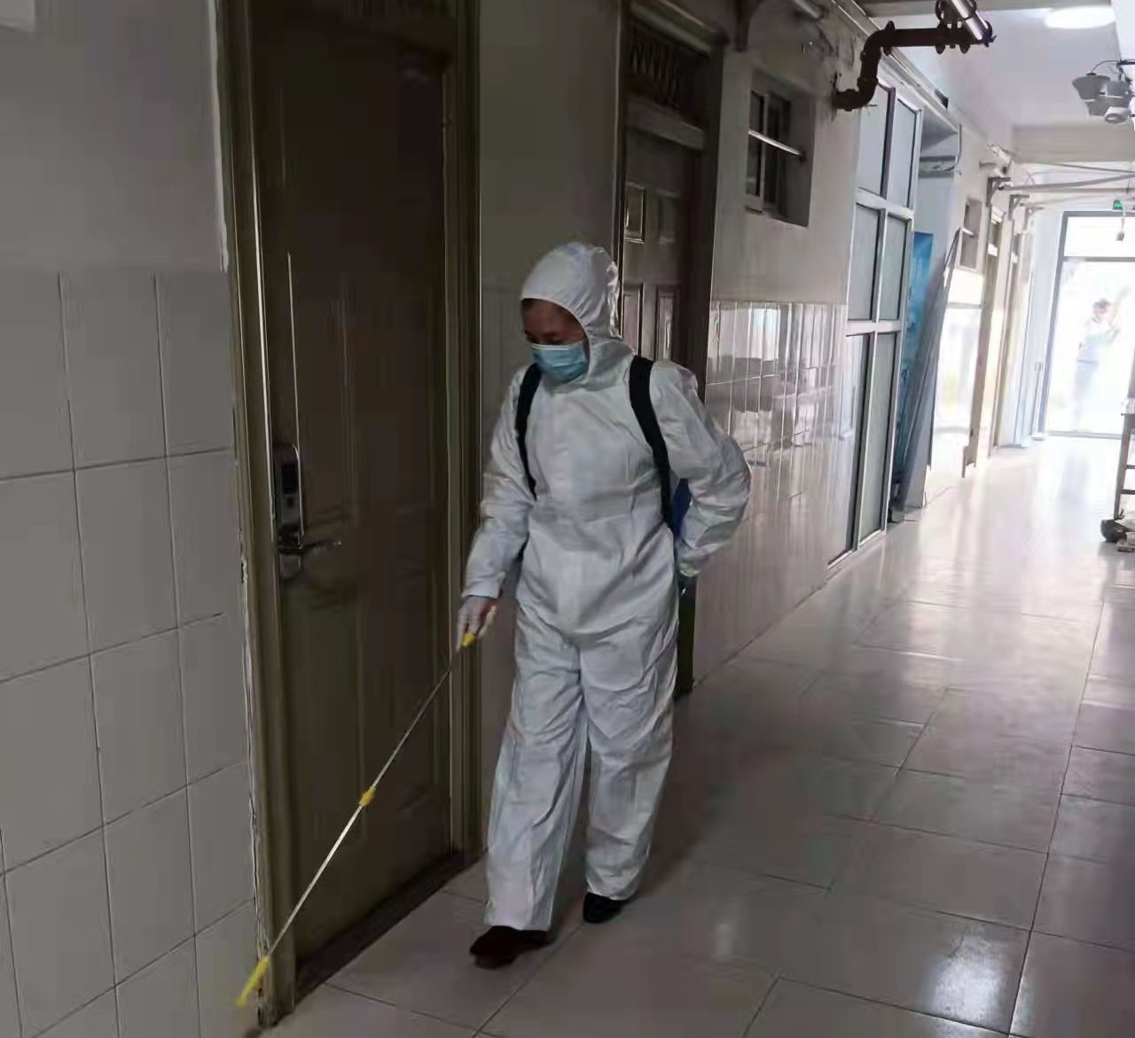 校园公共区域环境保障方面,在宿舍楼门厅处设置了防疫地贴、测温仪、防疫知识宣传提醒专区,还设立了自助防疫消毒站,提供免洗洗手液、酒精消毒液、消毒棉片等防疫物资。每天对宿舍楼公共区域和公共物体进行细致清洁消毒,确保住宿环境安全安心。对校内其他公共区域楼宇、校园环境实施分类管理,严格按照高危区域、重点区域、一般区域清洁消毒工作方案要求,加强对楼宇公共走廊,教室、体育场馆、浴室、公共卫生间等使用频繁的公共区域,以及电梯按钮、门把手、楼梯扶手等高频接触表面进行喷洒擦拭消毒。