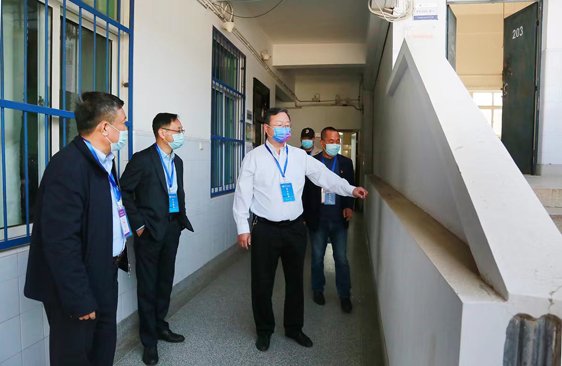 校党委书记王自力、副校长朱国军带领第一检查组检查苍梧校区学生宿舍