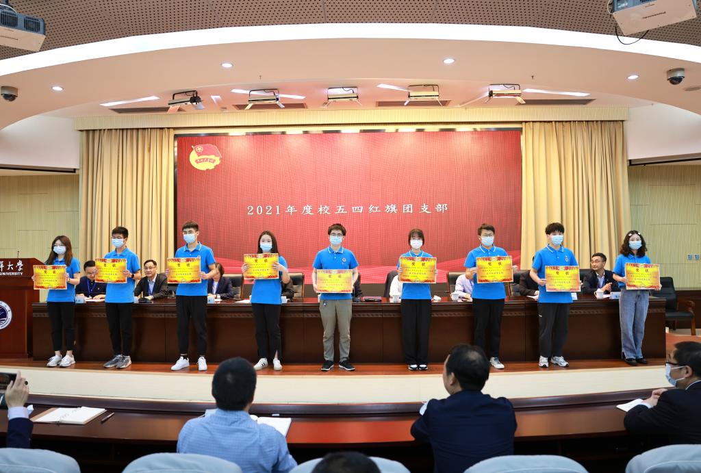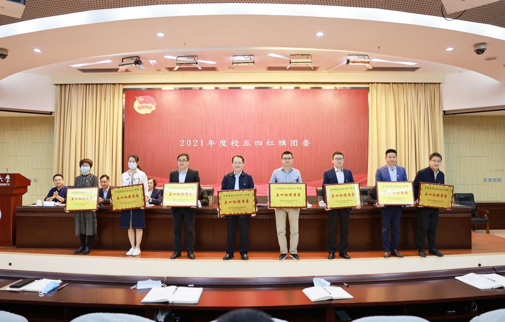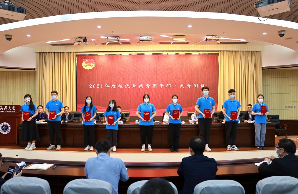 党委宣传部部长杨雪英宣读了《关于表彰江苏海洋大学2021年度五四红旗团委、共青团工作先进工作者、五四红旗团支部、优秀团干部、优秀团员的决定》,本次共计表彰了五四红旗团委8个、五四红旗团支部62个、共青团先进工作者8位、优秀团干部335位、优秀团员834位。