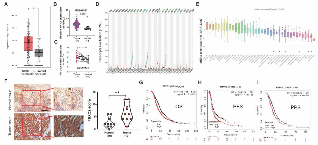 图2 FBXO2的上调与卵巢癌的预后不良有关