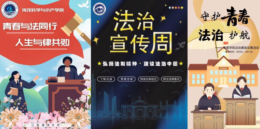 海洋科学与水产学院进行法治宣传海报设计评比;计算机工程学院组织开展青少年法治教育辩论赛;马卡洛夫海洋工程学院举办法治知识竞赛。