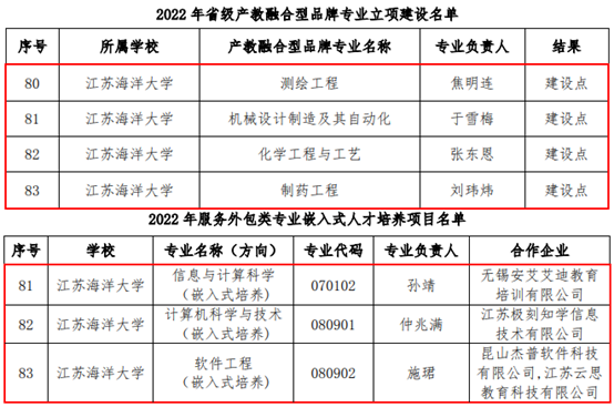 近日,省教育厅正式公布2022年省级产教融合型品牌专业立项建设名单暨服务外包类专业嵌入式人才培养项目审核结果,我校测绘工程、机械设计制造及其自动化、化学工程与工艺、制药工程4个申报专业全部入选省级产教融合型品牌专业立项建设点;信息与计算科学、计算机科学与技术、软件工程3个申报专业获批2022年服务外包类专业嵌入式人才培养项目。